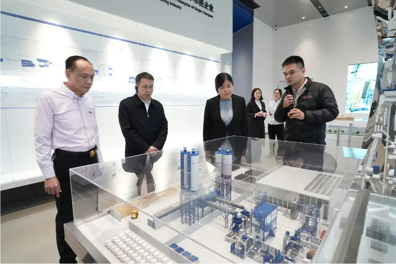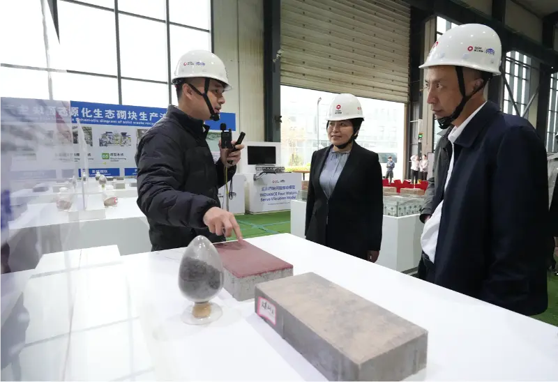 Ing area tampilan sampel bata, Pak Liu Min lan delegasi nliti macem-macem conto bata sing ramah lingkungan lan praktis nalika ngrungokake presentasi babagan proses manufaktur produk lan skenario aplikasi. Dheweke muji Quangong Machinery Co., Ltd. amarga komitmen kanggo pangembangan ijo lan inisiatif kanggo ningkatake panggunaan limbah padat sing efisien sumber daya, nyengkuyung perusahaan kasebut ngembangake luwih akeh produk sing cocog karo kabijakan pemerintah lan panjaluk pasar.