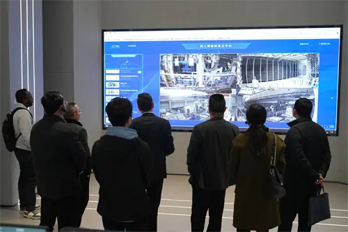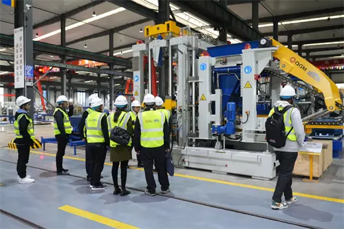 Tekan bengkel produksi cerdas saka QMG, para pengunjung mirsani mesin formasi otomatis blok kanthi cedhak. Badan mesin bobot atusan ton, sistem hidraulik kanthi transmisi tliti, unit cetakan kanthi cocog karo kabutuhan pelanggan kanthi cocog karo chain sing cocog karo pelanggan. "