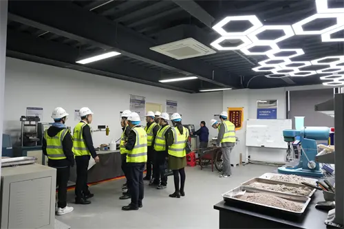Lumampah menyang laboratorium R & D QGong Brick Material, tim kunjungan kasebut kepincut karo instrumen tliti sing dhuwur lan adegan riset ilmiah sing sibuk. Iki ora mung "incubator" kanggo bahan bangunan anyar, nanging uga ditindakake topik inti kayata optimisasi rasio agregat limbah lan tes kekuatan bata.