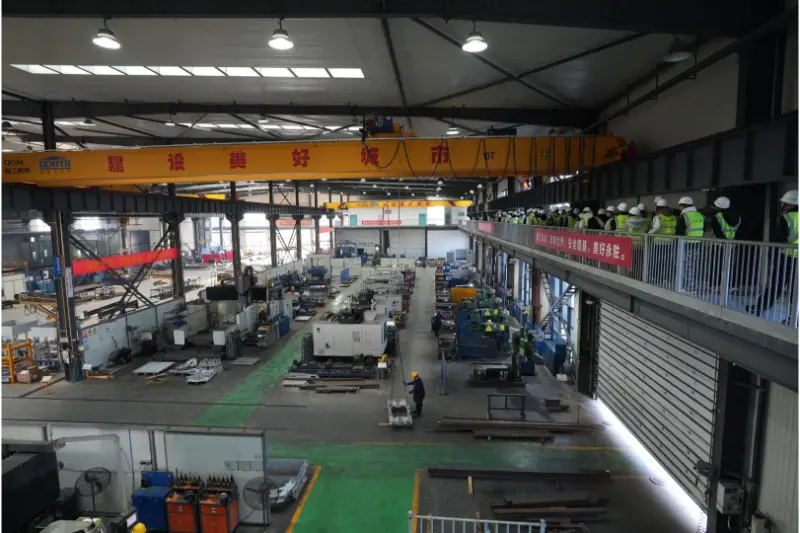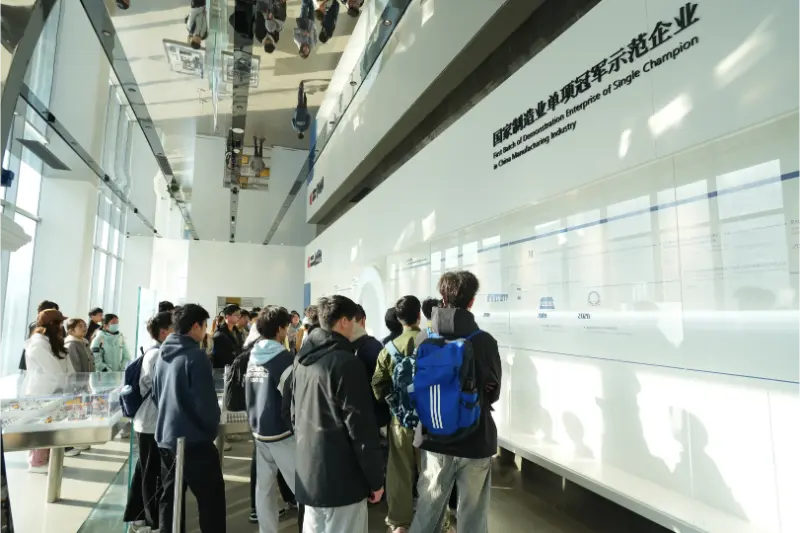 Salajengipun, para guru lan siswa ngunjungi bengkel mesin, mlebu ing garis ngarep manufaktur cerdas. Ing bengkel kasebut, pusat mesin CNC lan jalur perakitan otomatis dioperasikake kanthi kacepetan dhuwur, senjata robot kanthi tepat ngrampungake macem-macem operasi, lan sistem produksi digital nampilake kemajuan produksi lan data pemantauan kualitas ing wektu nyata, nuduhake efek sinergis saka "pabrik ijo" lan "bengkel cerdas." Ahli teknis perusahaan mimpin para guru lan siswa liwat kabeh proses saka pangolahan bahan mentah nganti perakitan peralatan, fokus kanggo nerangake aplikasi teknologi utama kayata interkoneksi peralatan CNC lan sensing status produksi sing tepat. Siswa aktif melu karo ahli teknis, ngrembug masalah kayata optimasi pangolahan lan teknik pangopènan peralatan, nggawe atmosfer sinau sing kuat ing situs.